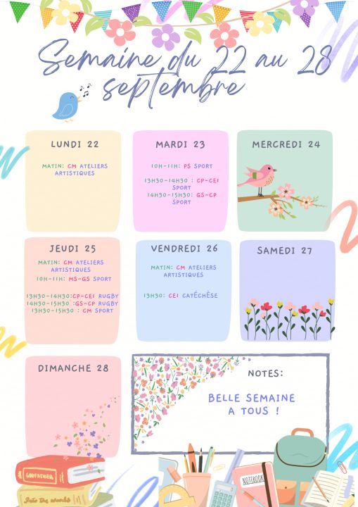 Semaine du 22 au 28 septembre 🌺☀️💼